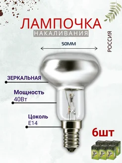 Лампочка R50 Е14 40Вт, 6шт зеркальная рефлектор