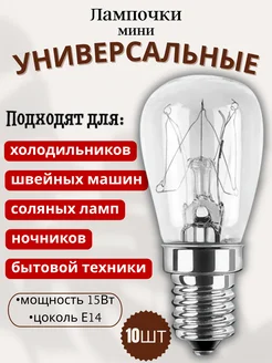 Лампа Е14 15Вт, 10шт для холодильников, соляных лам