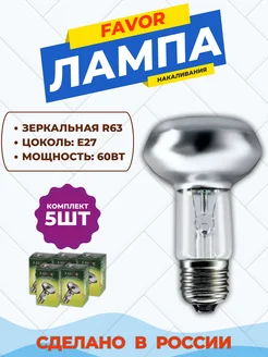 Лампа зеркальная Е27 R63 60Вт 5шт Россия
