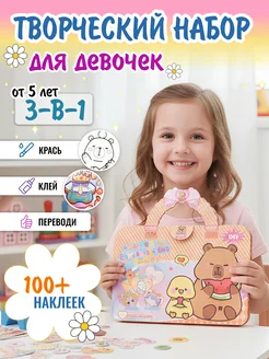 Творческий набор раскраска наклейки и тату для девочек 3 в 1