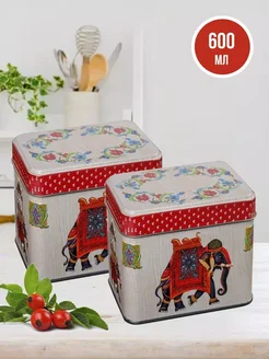 Набор банок для хранения Индийский слон 600 мл, 2 штуки