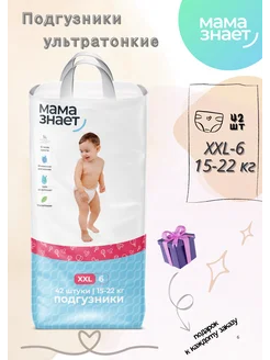Подгузники Мама знает размер XXL-6 (15-22кг) 42 штуки