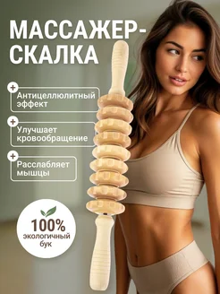 Массажер для тела деревянный роликовый скалка антицеллюлит