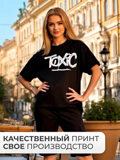 футболка базовая хлопок с принтом и надписью Toxic
