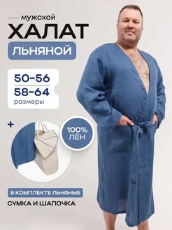 Халат льняной больших размеров с шапочкой для бани в сумке
