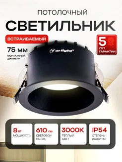 Светильник MS-DROP-BUILT-R84-8W Warm3000 (BK, 85 deg, 230V)