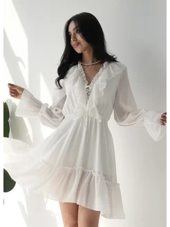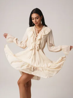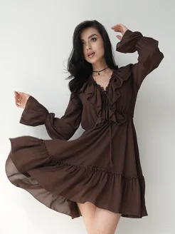 Нарядная вечерняя блузка из тенселя с воланами и рюшами