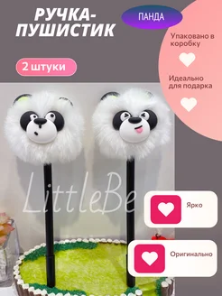 Пушистая ручка-помпон "Панда" (2 шт.)