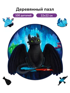 Деревянные фигурные пазлы для детей 6+, Дракончик Беззубик