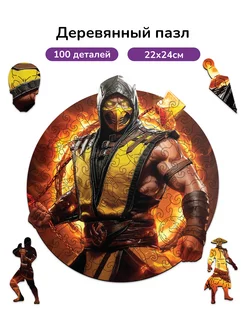 Деревянные пазлы для детей Мортал Комбат "Скорпион",подарок