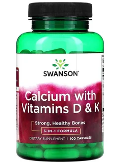 Calcium with Vitamins D&K 3in-1 Formula 100caps Swanson
