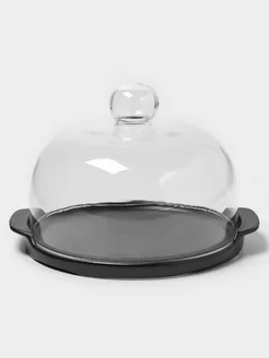 Блюдо для подачи с крышкой, фарфор, черное, 22 см