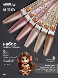 Гель лак кошачий глаз Винни Пух - Набор 6 шт