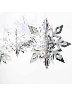 3D Гирлянда подвески 6 штук в виде Снежинок большая серебро
