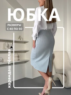 юбка голубая теплая карандаш