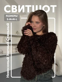 блуза свитшот пушистая нарядная шоколад под перья