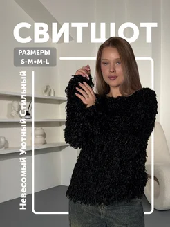 блуза свитшот пушистая нарядная черная под перья