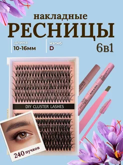 Набор накладных ресниц 6 в 1 Изгиб D 240штук пучки