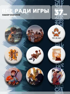 Значки Все ради игры. 9 шт диаметром 37 мм