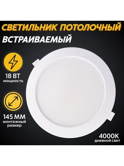 Встраиваемый светодиодный светильник 18 Вт, 1440ЛМ, 4000K