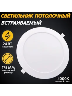 Встраиваемый светодиодный светильник 24 Вт, 1920ЛМ, 4000K