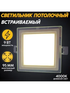 Встраиваемая светодиодная панель квадратная Glass 9 Вт 4000К