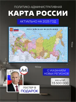 Политико-административная карта России настенная