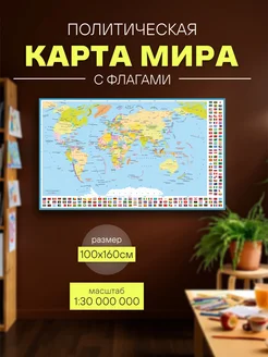 Карта мира 100х160 настенная географическая с флагами