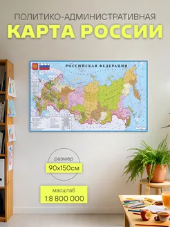 Карта России на стену 90х150см политическая большая