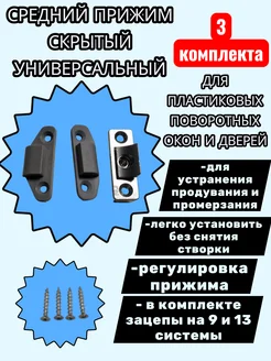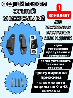 Средний скрытый прижим для окон ПВХ универсальный 3 компл