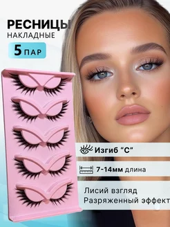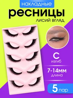 Накладные ресницы лисий эффект многоразовые 5 пар черные