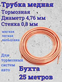 Тормозная трубка медная 4.76мм в бухте 25 метров