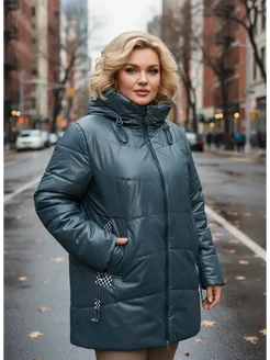 Куртка демисезонная больших размеров удлиненная с капюшоном