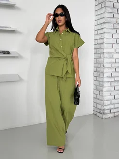 Летний костюм с брюками и рубашкой
