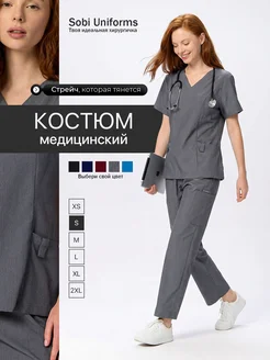 Медицинский костюм стрейч с брюками хирургичка оверсайз