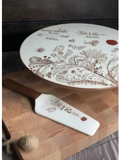 Тортовница с лопаткой Птичий Дворик 32см, керамика