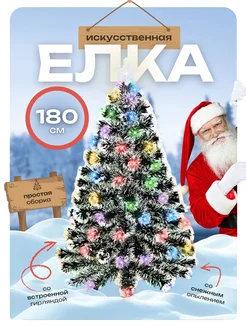 Елка искусственная зеленая со встроенной гирляндой 180 см