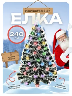 Елка искусственная зеленая со встроенной гирляндой 240 см