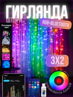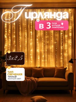 Новогодняя гирлянда шторы 3х2 5м теплый желтый