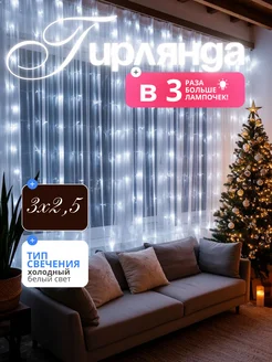 Новогодняя гирлянда шторы 3х2 5м холодный белый