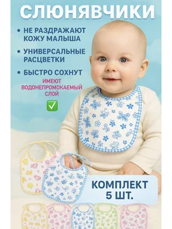 Слюнявчики для новорожденных непромокаемые 5 штук
