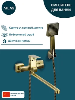Смеситель для ванны Atlas Saturn с длинным гусаком 35 см