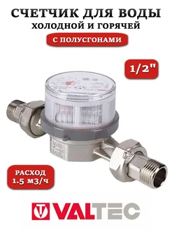 Счетчик для воды 1 2", крыльчатый с полусгонами