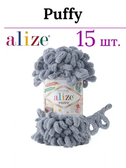 Пряжа для вязания Пуффи Ализе 428 серебристо-серый 15 штук