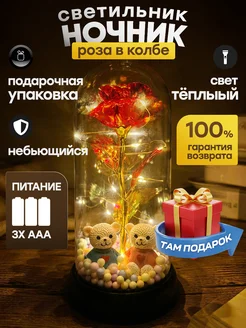 Светильник роза в колбе ночник