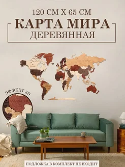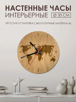 Часы настенные деревянные интерьерные 30см Карта Мира