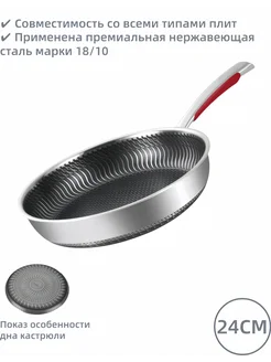 Сковорода из нержавеющей стали с крышкой, 26 см