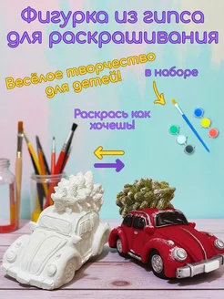 Гипсовая фигурка для раскраски, Машина с ёлкой, с красками