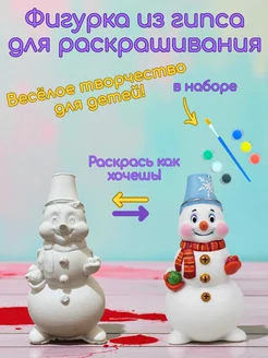 Гипсовая фигурка для раскраски, Снеговик с красками и кистью