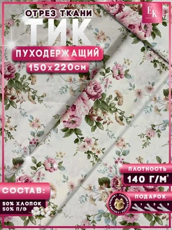 Ткань тик отрез 150x220см 140г м2 ЦветокНаБежевом